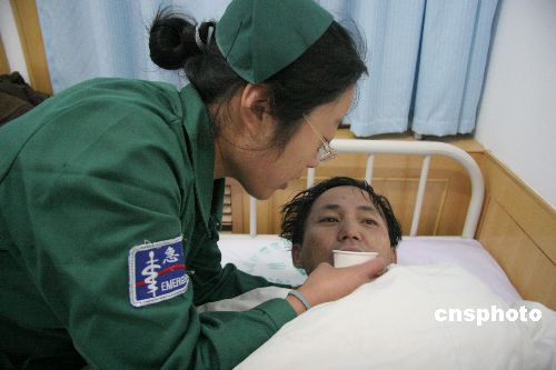 醫(yī)護(hù)人員在為獲救的船員查體。