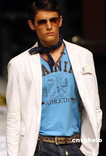 圖為模特展示卡賓男裝新款。