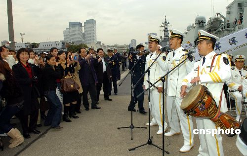 11月28日上午,中國海軍“深圳”號導彈驅逐艦抵達日本東京晴海碼頭,開始對日本進行正式友好訪問。日方舉行了熱烈的歡迎儀式。歡迎儀式后,中日兩國軍樂隊開始聯(lián)合演出。中新社發(fā) 滕劍峰 攝