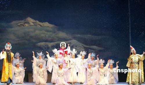 圖為由王艷、黃炳強(qiáng)、班典旺久表演的《文成公主》“三重唱”片段。