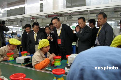 中國國務(wù)院新聞辦副主任王國慶為首的國務(wù)院驗收檢查組十二月二十五日至二十六日在廣州、河源等地,采取聽取匯報、現(xiàn)場隨機(jī)抽查等方式對廣東省四個月來的產(chǎn)品質(zhì)量和食品安全專項整治進(jìn)行檢查驗收。圖為驗收組在河源一玩具廠進(jìn)行檢查。中新社發(fā) 唐貴江 攝