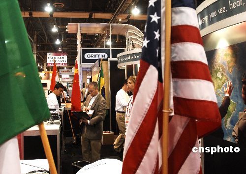 中美合資企業(yè)在展場插起兩國國旗
