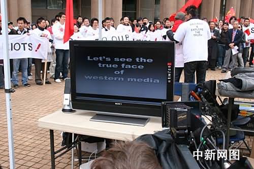 當(dāng)?shù)貢r(shí)間29日下午,加拿大溫哥華部分中國(guó)留學(xué)生和華人代表組織集會(huì)活動(dòng),現(xiàn)場(chǎng)播放錄像揭露部分西方媒體對(duì)西藏事件的不公正報(bào)道。 中新社記者呂振亞攝
