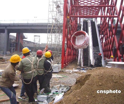 圖:奧林匹克中心區(qū)開始安裝吉慶大鼓