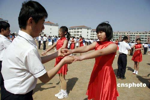 圖:山東威海舉辦迎奧運校園集體舞大賽(3)