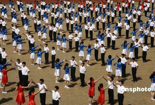 圖:山東威海舉辦迎奧運(yùn)校園集體舞大賽(6)
