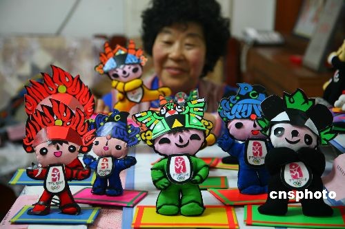 圖:北京70歲老人自制“福娃”宣傳奧運(yùn)