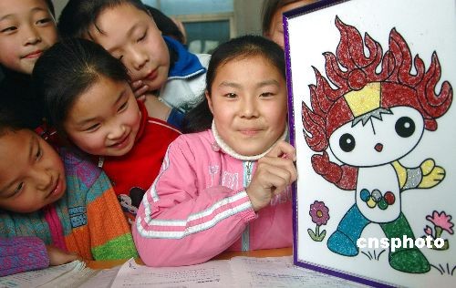 圖:河南社旗留守兒童手繪福娃祝福奧運(yùn)