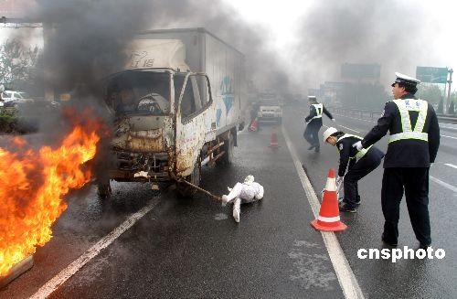 圖:山東交警舉行“迎奧運(yùn)保暢通”演練(2)