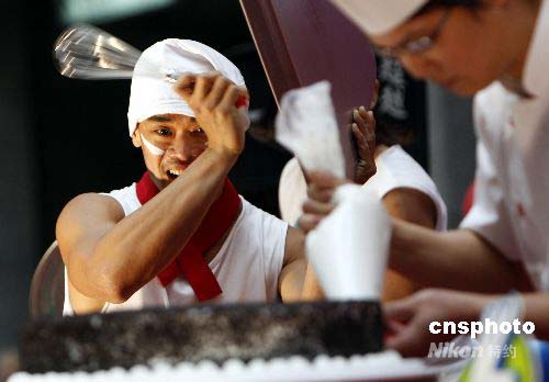 4月16日,臺(tái)北舉辦“母親節(jié)創(chuàng)意蛋糕大賽”,眾多知名蛋糕商爭奪三項(xiàng)類別獎(jiǎng)項(xiàng),店家和選手使出混身解數(shù),經(jīng)過外觀、口感等激烈評比后分別選出冠軍、亞軍、季軍各一名。比賽從剖蛋糕體、鋪內(nèi)餡、抹鮮奶油、擠花,全程需用最短的時(shí)間完成,參賽者不只拚速度,同時(shí)亦須兼顧完美程度,深度考驗(yàn)參賽者的技術(shù)以及熟練度。中新社發(fā) 杜洋 攝