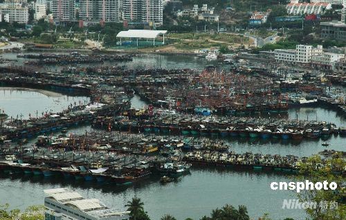 4月18日,海南大量漁船?吭谌齺喐郾茱L(fēng)。中新社發(fā) 尹海明 攝