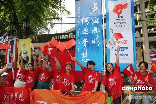 組圖:曼谷奧運(yùn)圣火傳遞現(xiàn)場(chǎng)目擊(6)