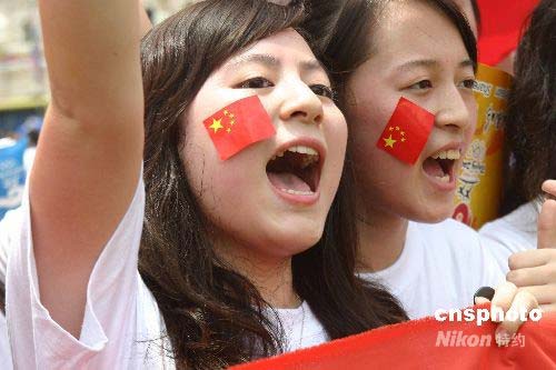 4月21日下午2時,北京奧運圣火在吉隆坡的點火起跑儀式在獨立廣場舉行。北京奧運圣火在吉隆坡的傳遞以“從古老到現(xiàn)代”為主題,從獨立廣場出發(fā)后,途徑市政廳、國家議會、國家博物館、國家清真寺、獨立體育場、吉隆坡電視塔,最終將于傍晚6時在國營石油公司雙峰塔舉行慶典儀式。整個傳遞路線約為16里,歷時4個小時。圖為中國留學生在吉隆坡為北京奧運圣火助威。作者: 沈晨