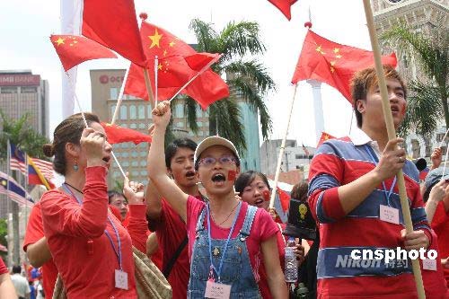 圖:中國留學(xué)生在吉隆坡為奧運(yùn)圣火助威(2)