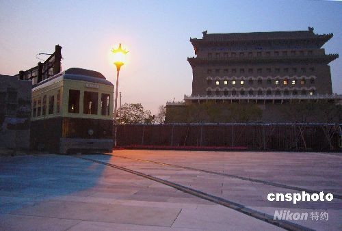 4月23日,消失了50年之久的“鐺鐺車”亮相北京前門大街。據悉,該車長12米,共有“前門一號”和“前門二號”兩輛。老北京俗稱的“鐺鐺車”無軌電車,因其不時響起的鈴鐺聲而得名。中新社發(fā) 玉龍 攝