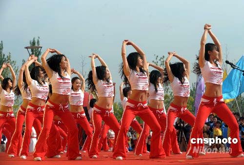 圖:北京民眾慶祝奧運(yùn)倒計時100天(3)