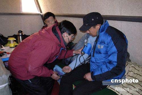 自4月28日,受邀采訪2008北京奧運(yùn)會火炬接力珠峰展示活動的中外媒體入住珠峰大本營絨布新聞中心后,新聞中心住房、通訊、食宿和醫(yī)療等設(shè)施齊備且環(huán)保,為中外記者提供采訪保障。這里能找到世界上海拔最高的郵政代辦所,居住的活動房、電力設(shè)施、網(wǎng)絡(luò)等所使用的均是環(huán)保材料,符合珠峰自然保護(hù)區(qū)的各項環(huán)保規(guī)定。圖為新聞中心的醫(yī)生在為有高原反應(yīng)的記者作身體檢查。 中新社發(fā) 盛佳鵬 攝