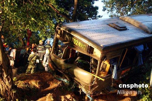 5月8日凌晨5時(shí)許,重慶主城一公交車墜橋沖下護(hù)坡,致車上14人受傷,其中10重傷,4人輕傷。據(jù)稱,事故車輛為牌號(hào)渝A25732的702路公交車,事故發(fā)生時(shí),該車輛正由渝中區(qū)駛往江北區(qū)方向,途徑嘉陵江大橋北橋頭時(shí),沖下10米高的護(hù)坡。事故公交車線路是由重慶市朝天門駛往沙坪壩區(qū),途中不經(jīng)過江北區(qū),該車輛屬于跨線運(yùn)營。中新社發(fā) 郭晉嘉 攝