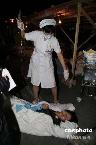 5月12日下午,四川汶川地震后,四川省人民醫(yī)院的醫(yī)務工作者在救助來自都江堰的傷員。中新社發(fā) 黃家明 攝