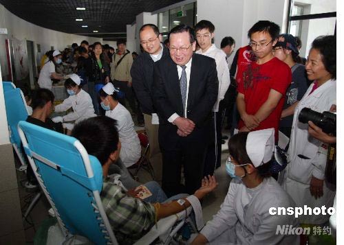 清華大學(xué)學(xué)子為地震災(zāi)區(qū)獻(xiàn)血 校長顧秉林慰問同學(xué)