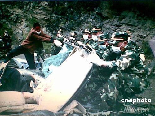 組圖:武警官兵抗震救災(zāi)途中就展開救援搶險(2)