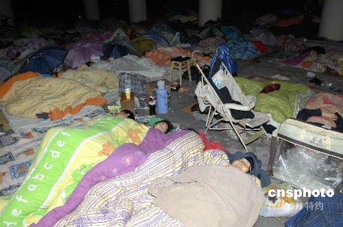 圖:成都地震災(zāi)區(qū)民眾露宿街頭立交橋下(4)