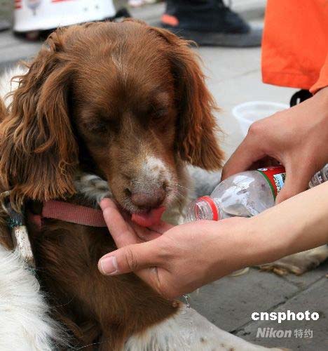 組圖:消防搜救隊(duì)給搜救犬喂水(6)