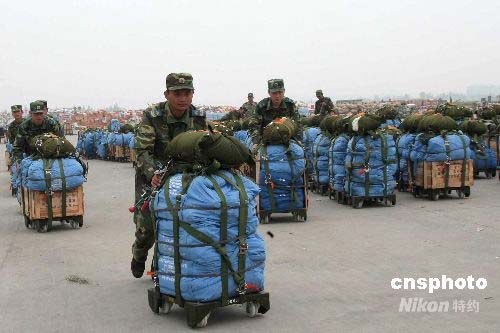圖:中國(guó)空軍向四川災(zāi)區(qū)空投帳篷成功