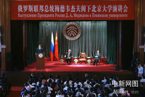 圖:梅德韋杰夫在北京大學(xué)發(fā)表演講(2)