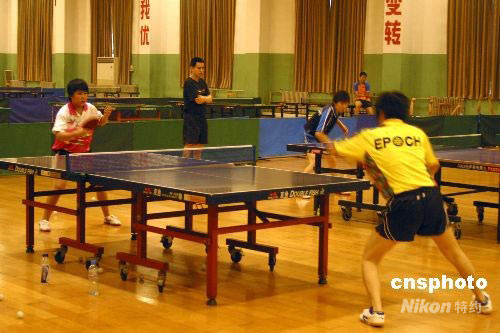 五月二十七日,四川省乒乓球運動員在河南鄭州進行緊張的訓練。連日來,為避免地震的影響,四川省包括游泳、射擊、乒乓球、網(wǎng)球、跆拳道等六支運動隊九十多名運動員轉(zhuǎn)移到河南鄭州進行訓練,以全力備戰(zhàn)北京奧運會和明年舉行的全運會。 中新社發(fā) 史寶銀 攝