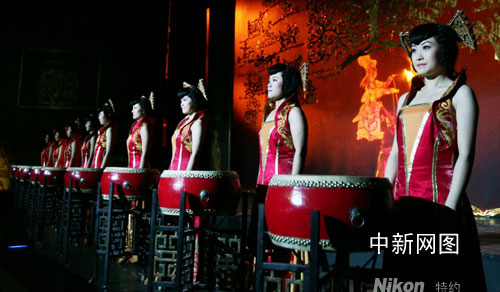 在開幕式晚會上,演員在表演鼓藝。作者 張云
