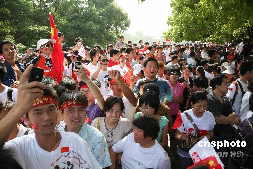 圖:安徽蕪湖群眾喜迎奧運(yùn)圣火