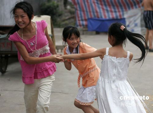 組圖:地震災區(qū)孩子漸露童真笑臉(8)