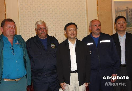 5月30日,中國外交部部長楊潔篪前往成都市錦江賓館會見俄羅斯醫(yī)療隊,高度贊揚了他們對災(zāi)區(qū)民眾的關(guān)心和國際人道主義精神。中新社發(fā) 黃榮 攝