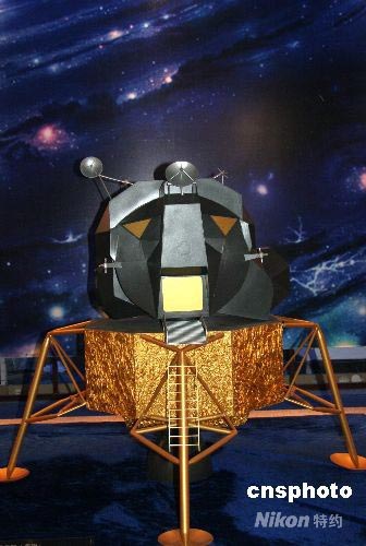 5月30日下午,以“奔月交響曲”為主題的“月球探測科普展”在中國科學(xué)技術(shù)館開幕,展覽為期兩個(gè)月,向公眾免費(fèi)開放。圖為展出的美國“阿波羅”十一號登月艙模型。中新社發(fā) 孫自法 攝