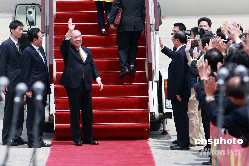 5月31日,中國(guó)國(guó)民黨主席吳伯雄率領(lǐng)的大陸訪問(wèn)團(tuán)圓滿結(jié)束了為期6天的大陸訪問(wèn)行程,搭乘包機(jī)離開(kāi)上海,經(jīng)香港返回臺(tái)灣。中新社發(fā) 盛佳鵬 攝