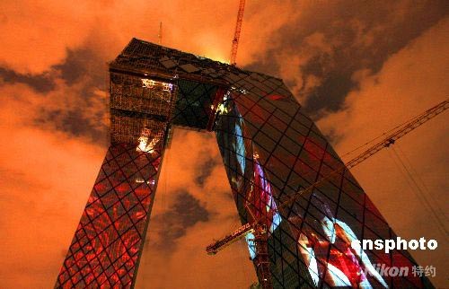 圖:巨型體育明星投影扮靚央視新址樓體