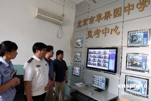 六月五日,全國(guó)高考前,北京石景山警方在轄區(qū)內(nèi)對(duì)保管2008年高考試卷及考場(chǎng)等公共設(shè)施進(jìn)行安全檢查,以確保今年高考順利安全進(jìn)行。中新社發(fā) 任海霞 攝