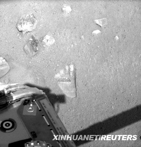 “鳳凰”號(hào)探測項(xiàng)目經(jīng)理戴維·斯潘塞6月1日說,機(jī)械臂與火星的第一次接觸為之后的采集土壤和向其他科學(xué)儀器傳送土壤樣品做好了準(zhǔn)備。由于機(jī)械臂形狀特殊,其在火星留下的“第一痕”類似于人類腳印。 新華社/路透