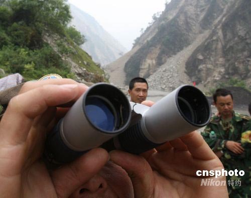 參加搜救的四川省軍區(qū)部隊(duì)在被稱(chēng)為“死亡谷”的地震中心,繼續(xù)觀察山高林密非常險(xiǎn)峻的失事地點(diǎn)。中新社發(fā) 賈國(guó)榮 攝