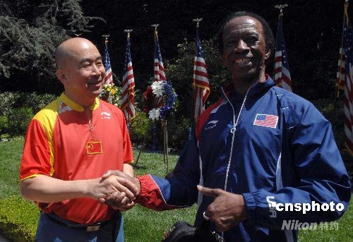 當(dāng)?shù)貢r間六月十日,三十七年前中美“乒乓外交”的兩位對手——原中國乒乓國手梁戈亮和美國乒乓球選手喬治·布雷斯威特在美國加州尼克松圖書館重逢。喬治說,當(dāng)年他兩次輸給了梁戈亮,梁戈亮笑稱大家都贏了,贏得了友誼。尼克松圖書館將于十二日舉辦乒乓球友誼賽,重溫三十七年前中美“乒乓外交”的歷史性一幕,屆時代表中國老、中、青乒乓球國手的梁戈亮、喬云萍、張雷和宋時超將與美國乒乓球選手進行友誼賽。中新社發(fā) 張煒 攝