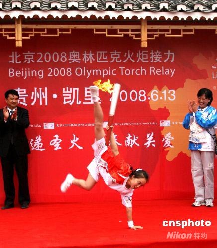 圖:奧運(yùn)火炬黔東南首棒"特色傳遞"