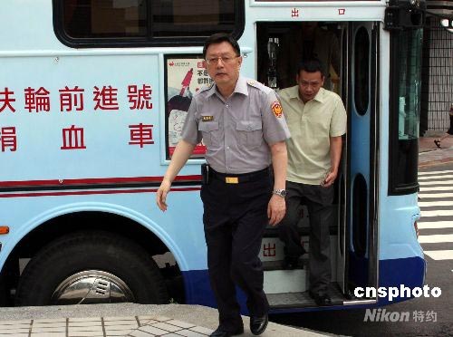 臺北市政府警察局十三日舉辦慶祝警察節(jié)活動,圖為臺北市警察局局長帶頭捐血。中新社發(fā) 耿軍 攝