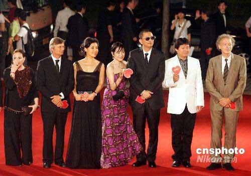 圖為金爵獎(jiǎng)國際評(píng)委亮相,他們是德國制片人烏里希、中國導(dǎo)演霍建起、中國香港導(dǎo)演王家衛(wèi)、日本明星桃井熏、著名演員陳沖、丹麥導(dǎo)演比爾和以色列女演員吉拉(右起)。中新社發(fā) 潘索菲 攝