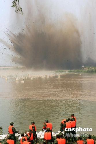 圖:濟(jì)南舉行大型黃河防汛搶險演練(2)