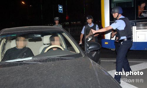 六月十九日夜,北京豐臺(tái)警方舉行奧運(yùn)安保演練,進(jìn)行設(shè)卡攔截演習(xí)。五十余輛警車迅速到達(dá)進(jìn)出北京方向和相關(guān)環(huán)線的各個(gè)路口執(zhí)行攔截任務(wù),并成功將“犯罪嫌疑人”截獲。中新社發(fā) 楊陽(yáng) 攝