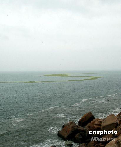 受南方強(qiáng)降雨及氣候變化的影響,近日二00八北京奧運(yùn)會(huì)帆船賽舉辦地青島近海海域涌現(xiàn)大面積海藻并侵入岸邊,青島市海洋漁業(yè)局組織有關(guān)部門及時(shí)進(jìn)行清潔打撈,以保障各國運(yùn)動(dòng)員的訓(xùn)練不受影響,F(xiàn)在每天有四百多艘漁船一千三百余人參與出海打撈,預(yù)計(jì)隨南方降雨量減少及氣候改變,青島海域海藻將消失。中新社發(fā) 曲連遵 攝
