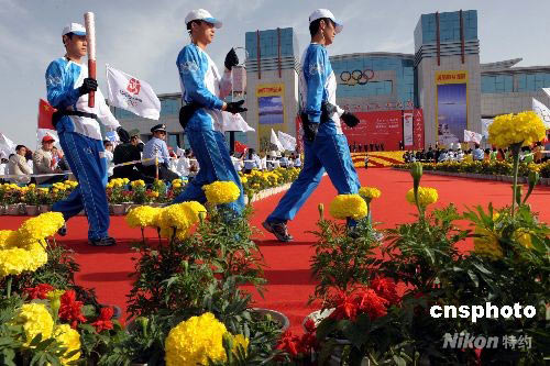 圖:奧運(yùn)火炬在青海格爾木市傳遞