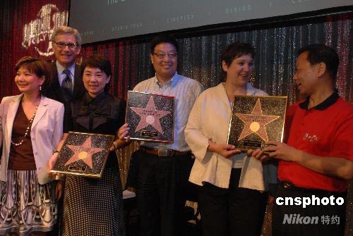 圖:中國赴美旅游首發(fā)團(tuán)獲頒好萊塢古銅星