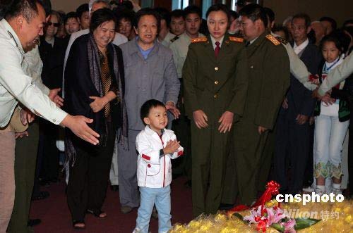 資料圖為2006年9月9日毛澤東逝世三十周年紀念日。毛澤東的親屬匯聚毛主席紀念堂敬獻鮮花。邵華、毛新宇及妻子劉濱帶著毛澤東三歲的重孫毛東東向太爺爺獻花。中新社發(fā) 任晨鳴 攝